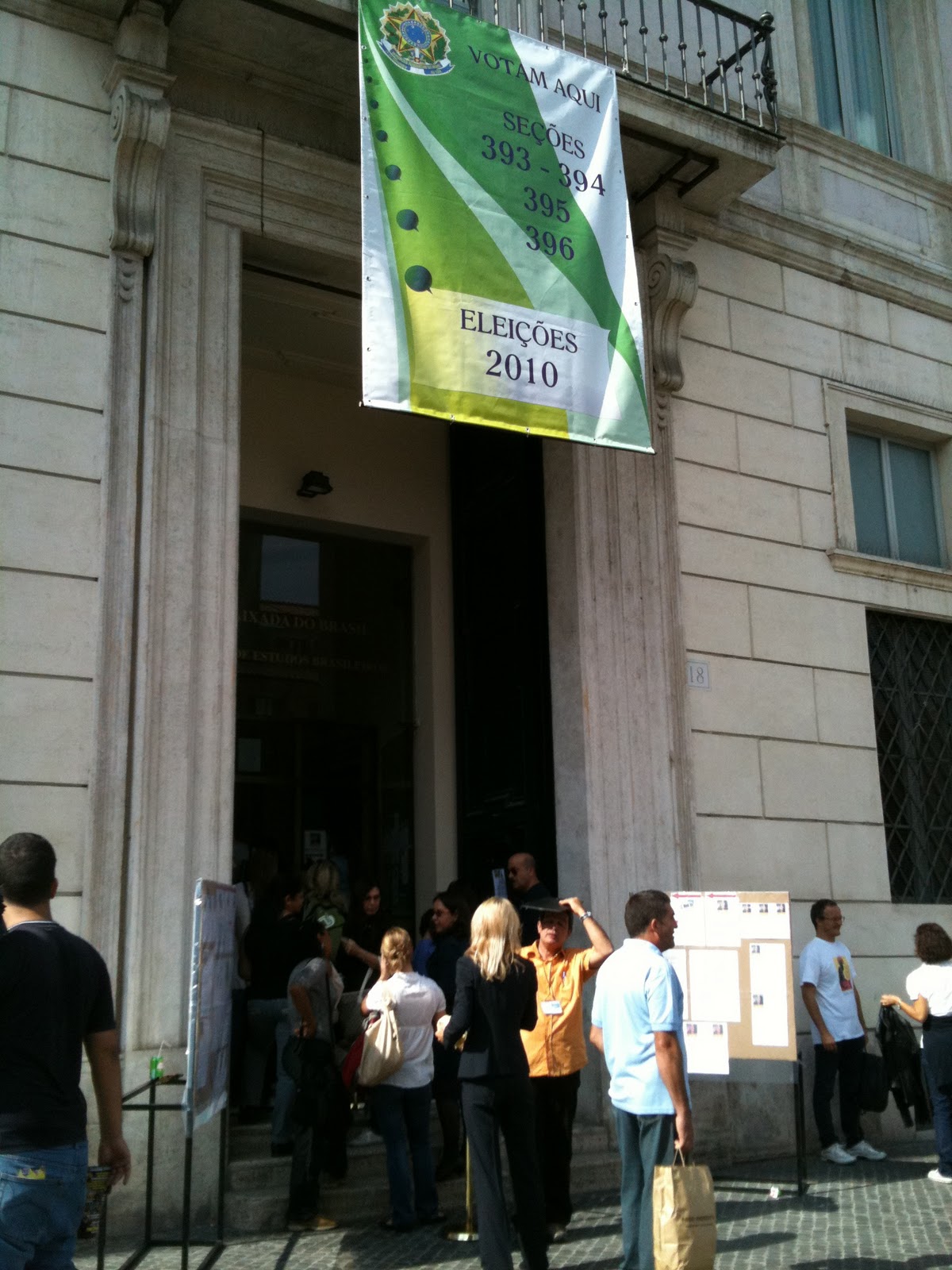 A votação aqui em Roma foi um sucesso. De acordo com matéria publicada no Terra, compareceram a Roma 1938 eleitores dos 3488 cadastrados, bem 55% de presença o que é um resultado fantástico se levarmos em conta que muitos dos eleitores – como eu – tem que se deslocar de Firenze a Roma para votar (alguns até de cidades mais distantes!).